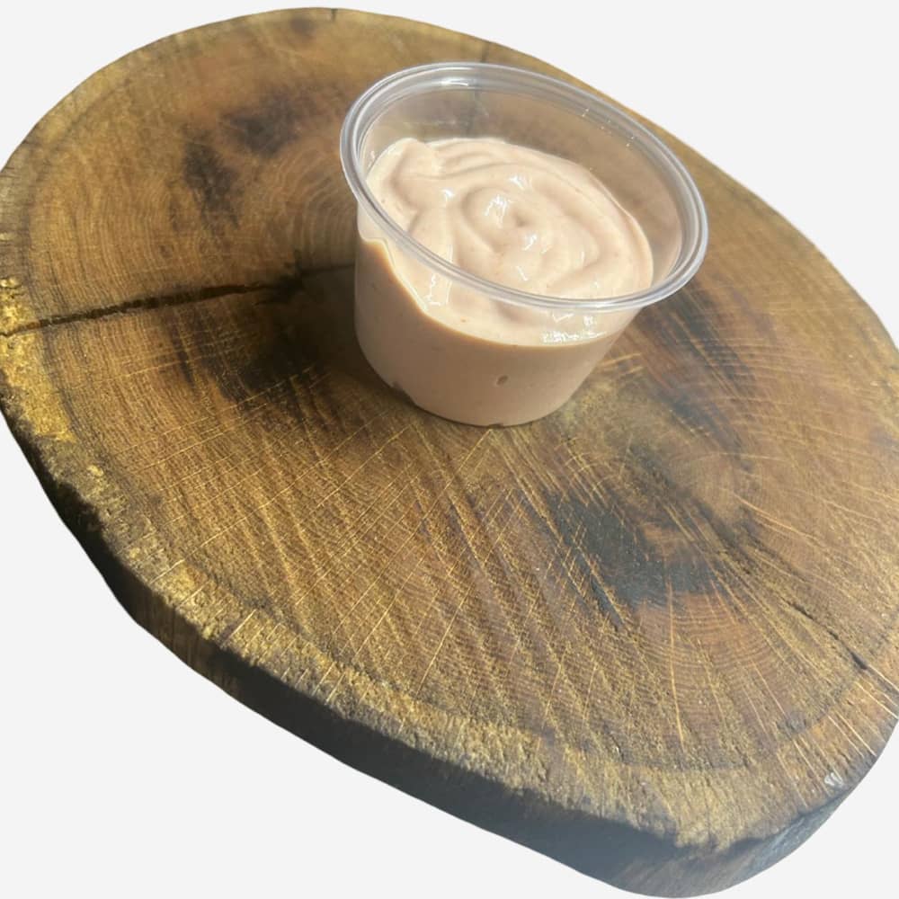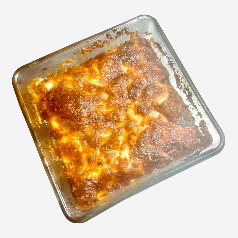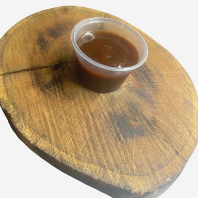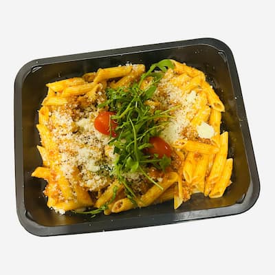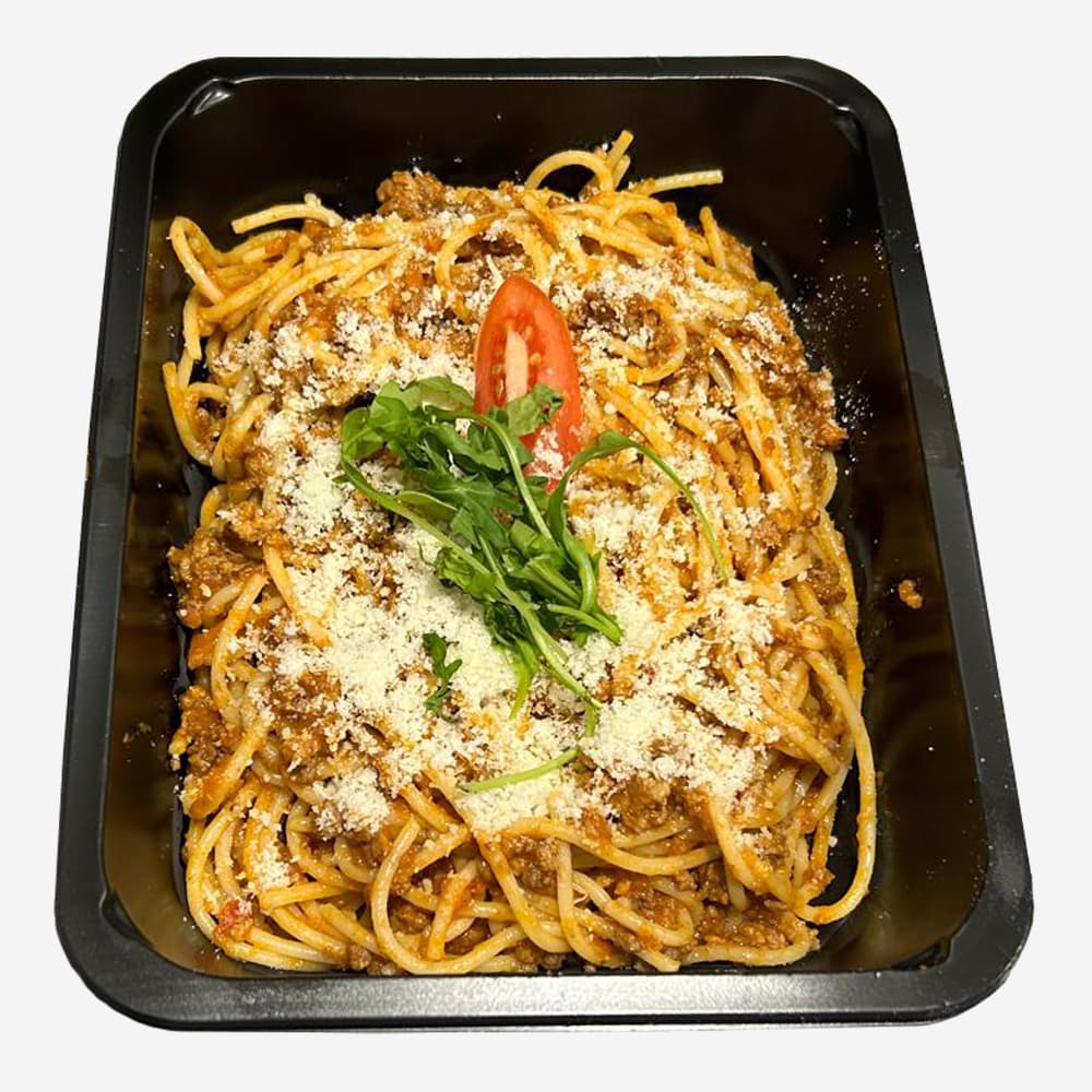 pomodoro, mozzarela, hovězí mleté maso, slanina, kozí rohy, čedarová omáčka, BBQ omáčka