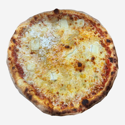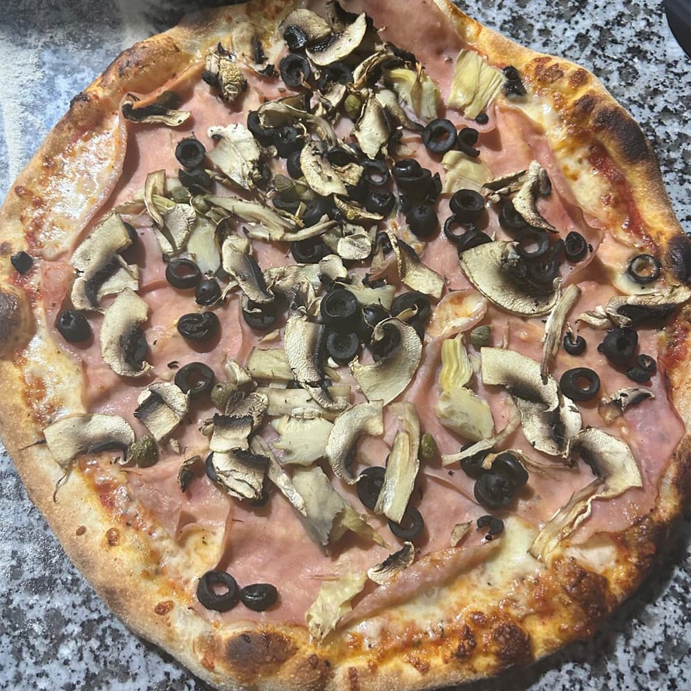 rajčata, mozzarella, šunka, žampiony, kapari, artyčoky, černé olivy, ⌀ 33 cm