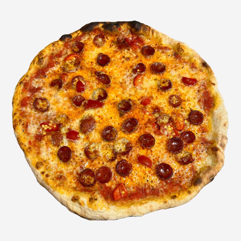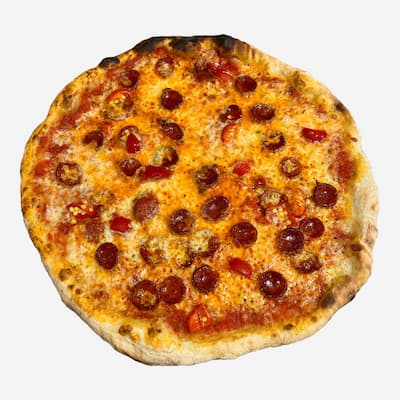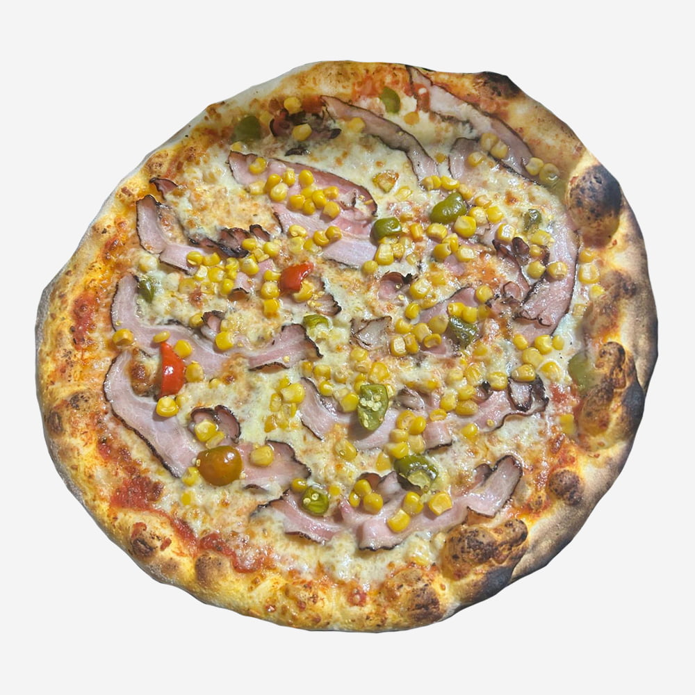 rajčata, mozzarella, slanina, kukuřice, feferonky, ⌀ 33 cm