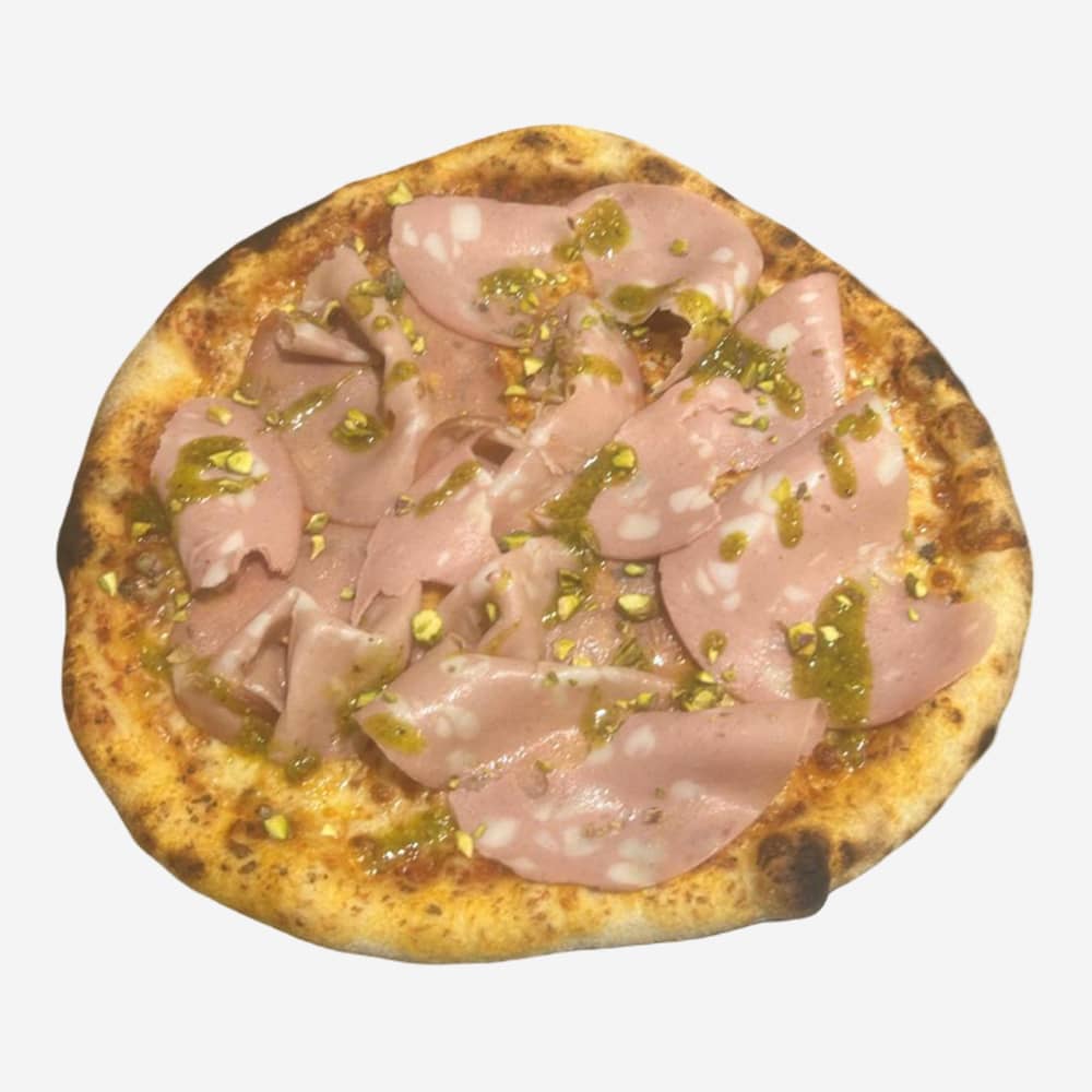 rajčata, mozzarella, mortadella, pistáciové pesto, pistácie, ⌀ 33 cm