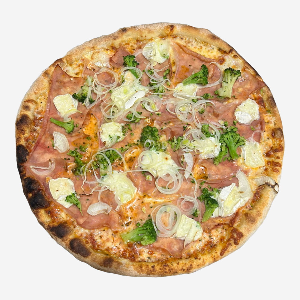 rajčata, mozzarella, šunka, hermelín, brokolice, cibule, ⌀ 33 cm