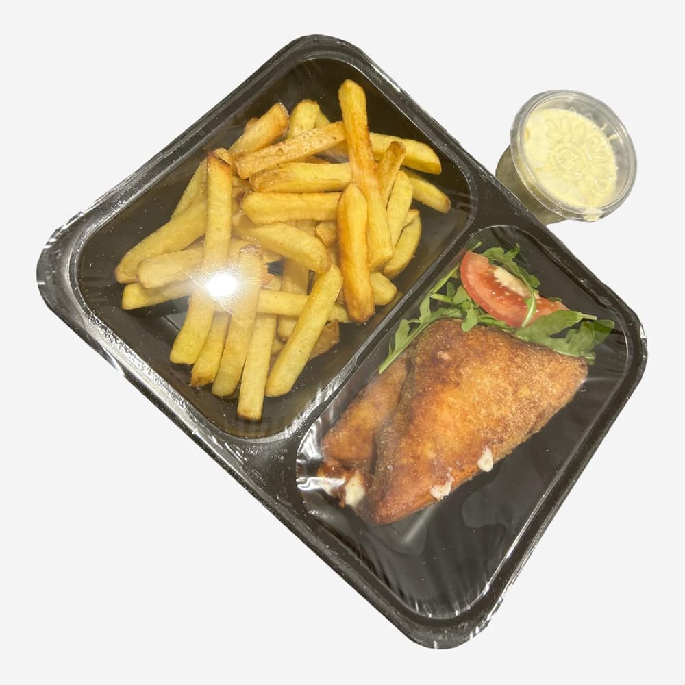 150 g, smažený sýr, domácí tatarka, rucola, ledový salát, rajče