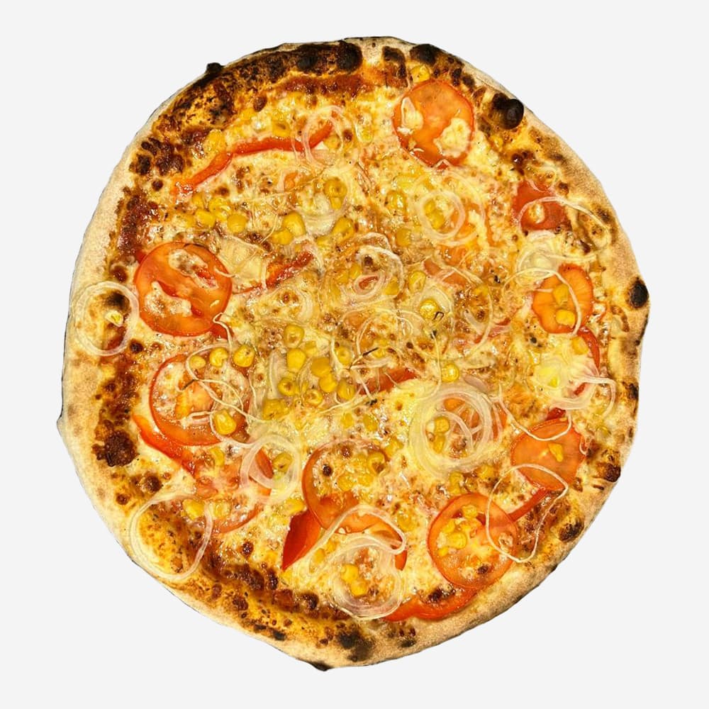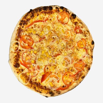 rajčata, mozzarella, cibule, kukuřice, čerstvá rajčata a papriky, ⌀ 33 cm